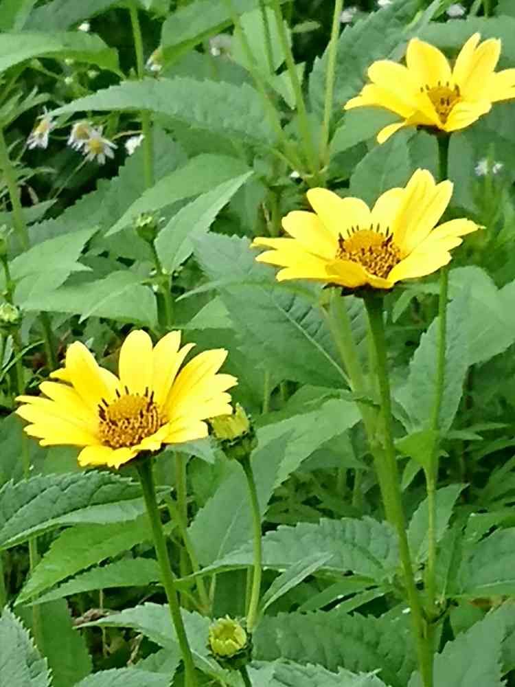 名前を教えてください。家の前の空地に咲いていました。雨上がりのどんよりとした空気に、鮮やかな黄色が目立ちます。