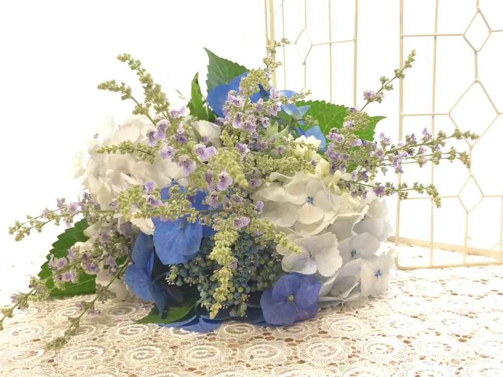 先日実家で摘んできた紫陽花💙西洋ニンジンボクのお花が開いてきたのでブーケ風に束ね直しました✨💠