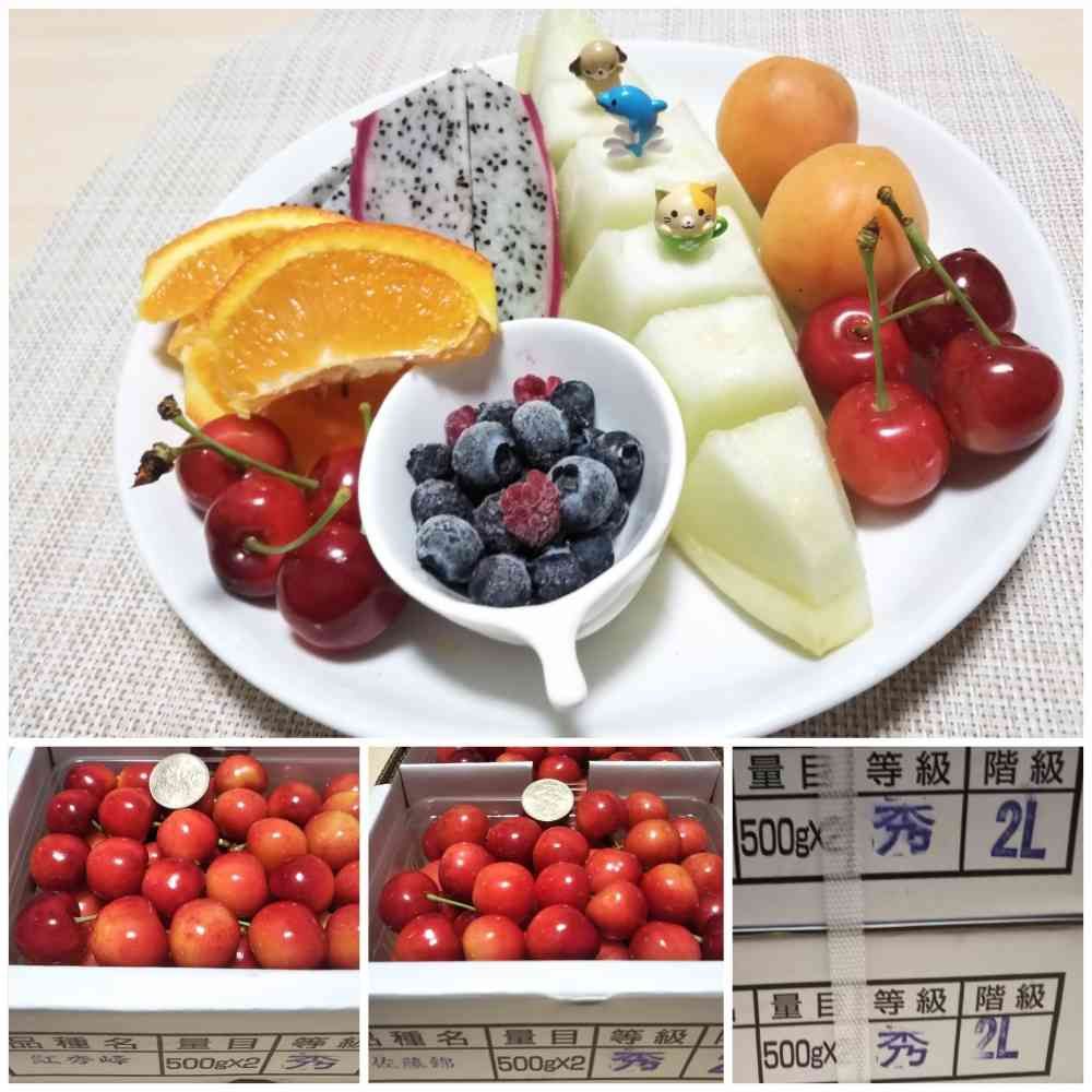 うわぁ〜高級〜佐藤錦〜〜この盛り合わせもステキじゃん 💗 疲れてる時はフルーツ食べたい私〜〜😃💗
