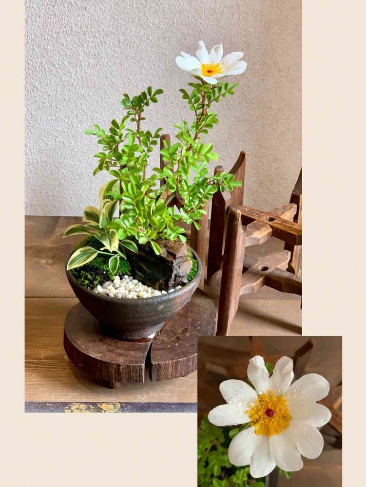 先日投稿した八重山バラの盆栽の花が咲きました✨真っ白でキレイです✨