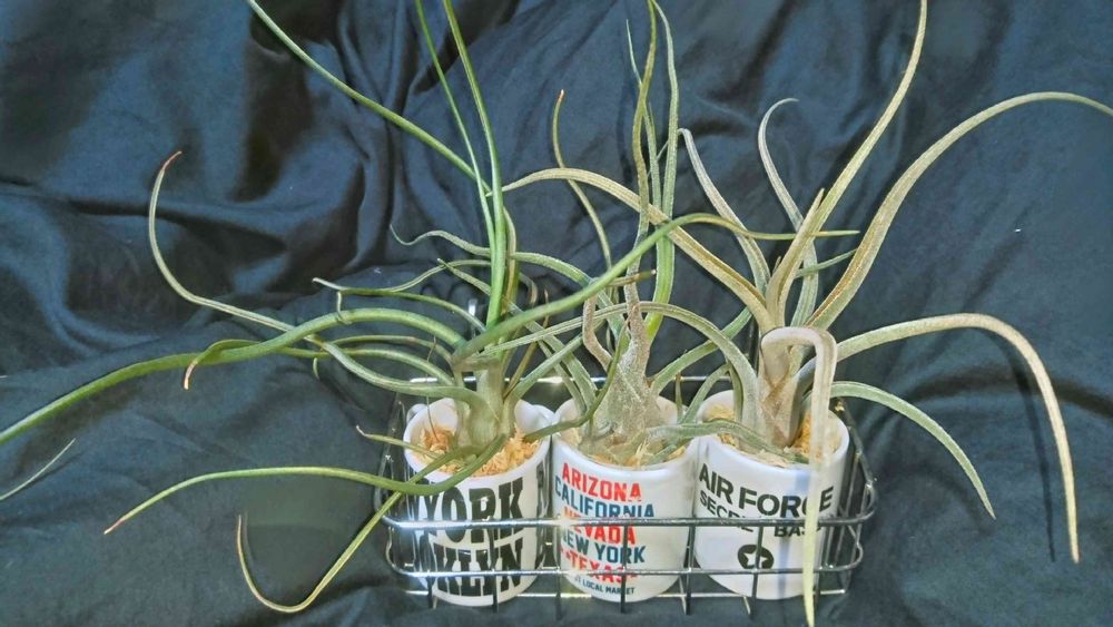ちょっとだけ、レアっぽい壺型チランジアが似たような大きさだったので、少しだけ見栄えがイイようにしてみた。セリアのデミタスカップに乾いた水苔を敷いて並べてみた。