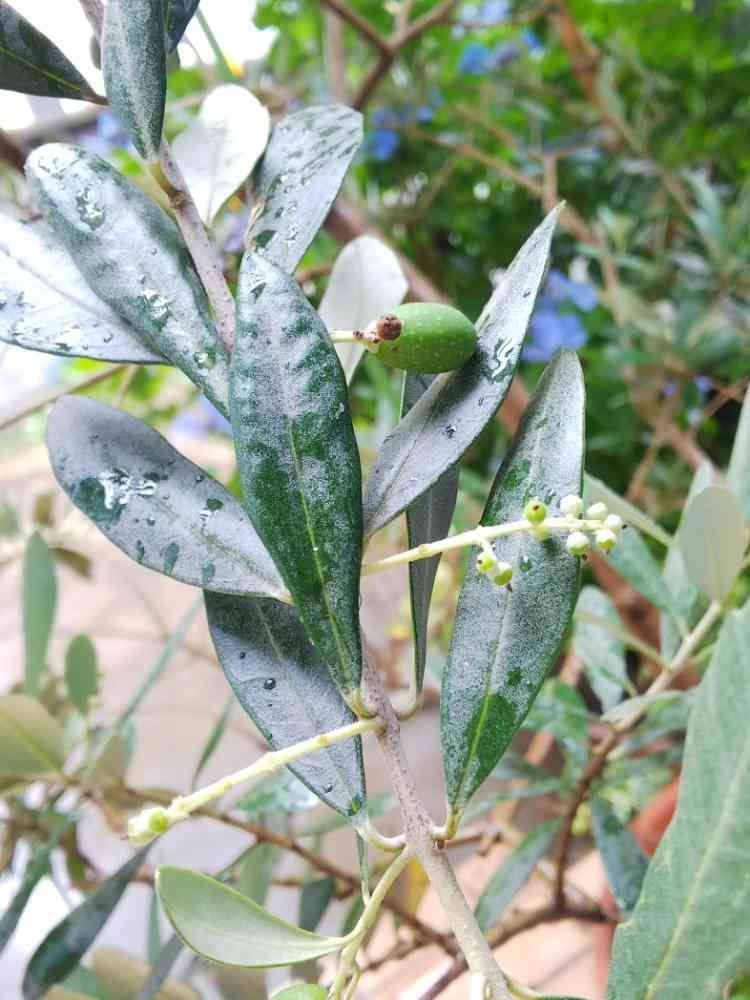 ここ何年か、鉢植えのオリーブに実が付いています。