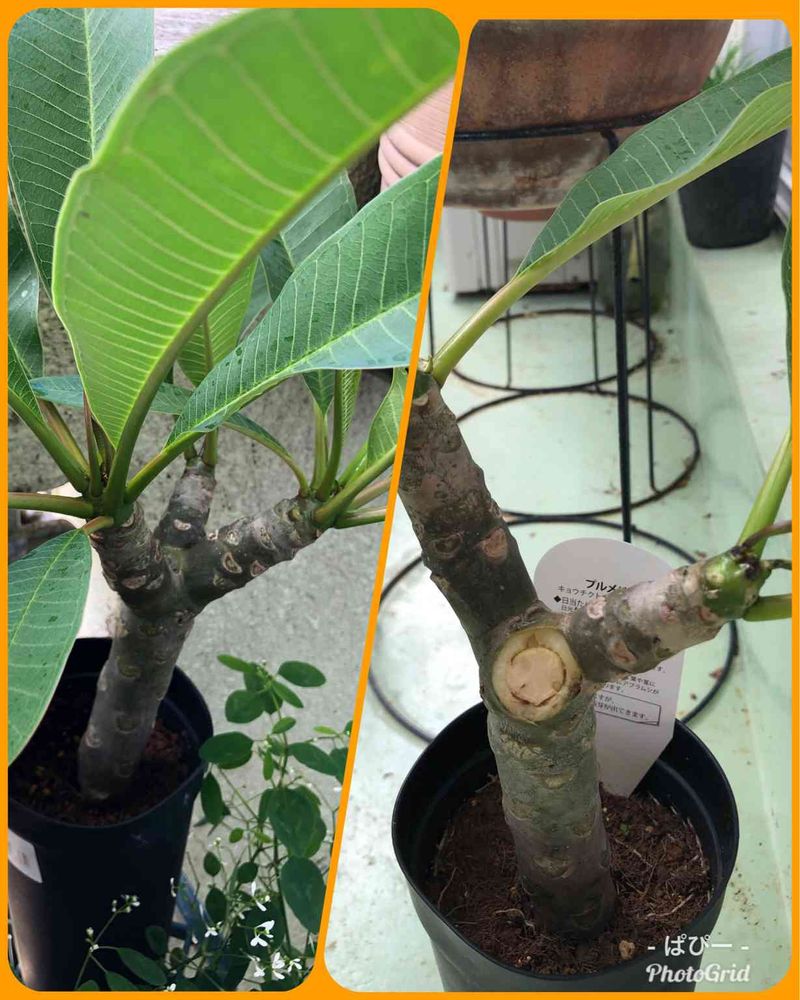 はじめまして。僕もプルメリアの鉢が風で倒れて枝が1本折れてまいましたが、新芽が出てきましたよ🌱