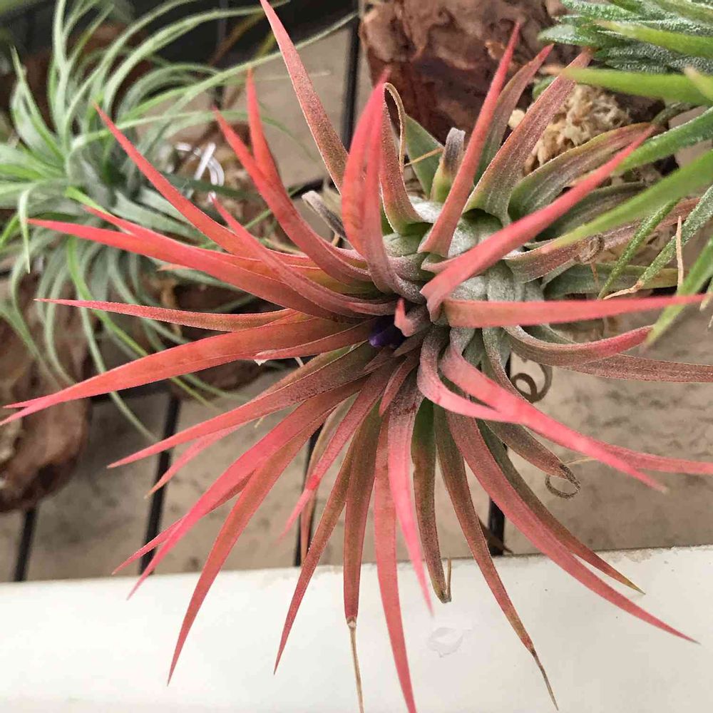 イオナンタの葉が赤く染まってきました。中心からもツボミが見えてます。