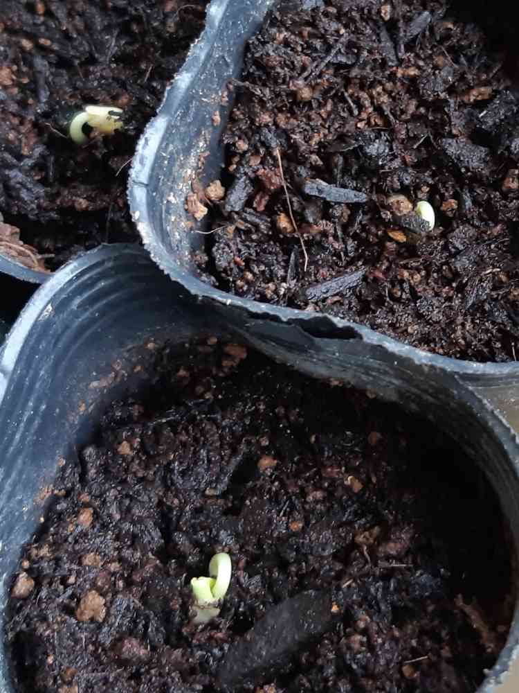 5月に蒔いたスプリットペタルが早くも種をつけ、それをまた蒔いたら3日目の今日小さな芽が出始めました。