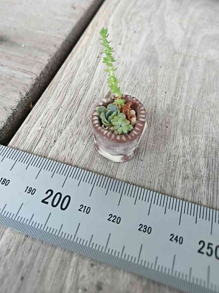 ありがとうございます‼️陶芸で小さい鉢を作って(鉢穴も開けてあります)葉挿しで根と芽がでた子を植えました~