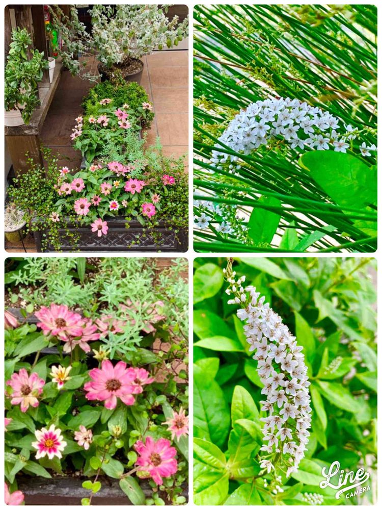 左の花はジニア、百日草です😊