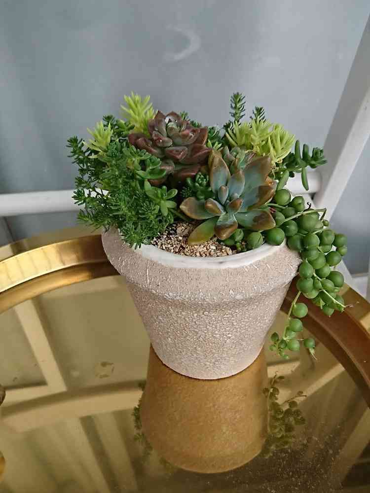 団地のベランダで多肉植物とハーブを主に育てていて、特に多肉の寄せ植えにハマっています 時々自作の陶芸鉢に寄せ植えしています。