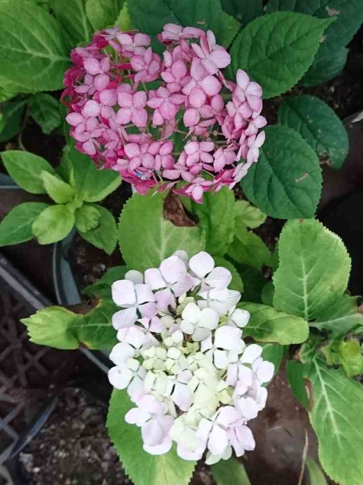 紅白に並んだアジサイ😊