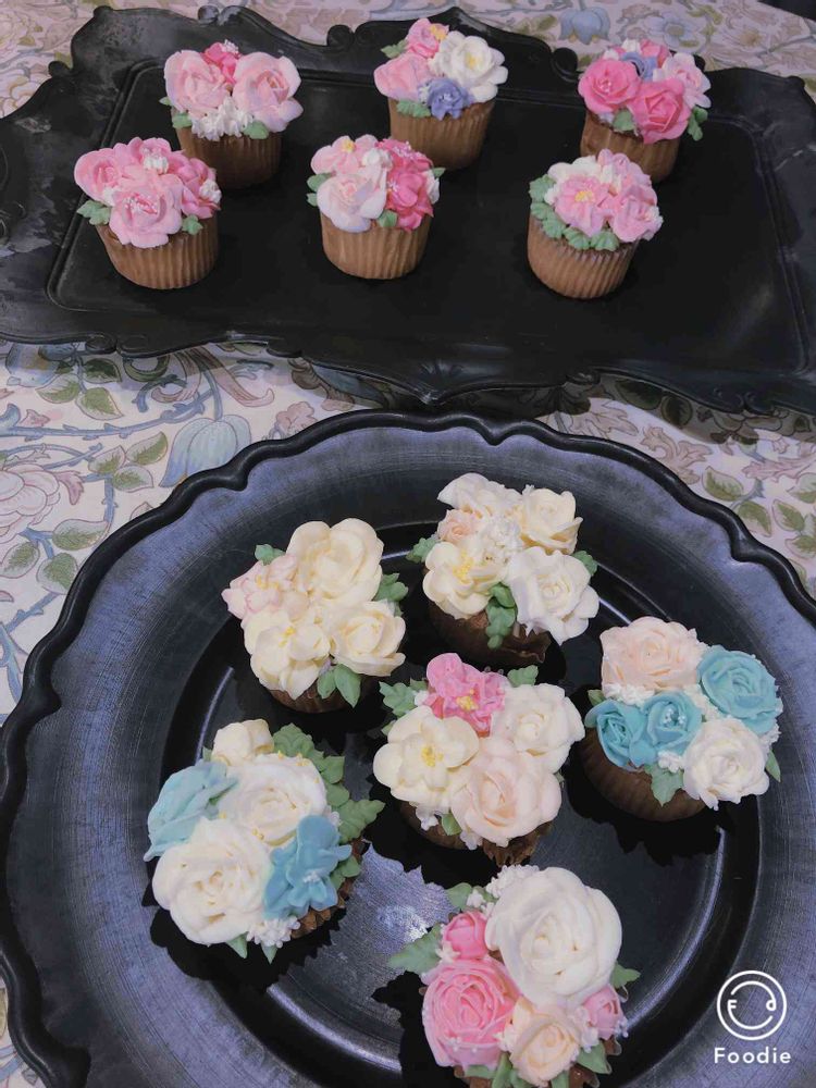 バラとストックをモチーフに、カップケーキにデコレーションしてきました!