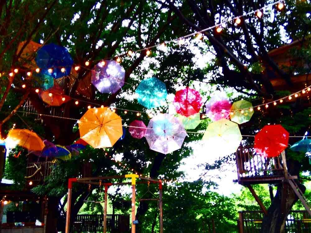 階段を登ると、傘とツリーハウスがあるのですが、ワクワクしながら登りましたよ😍💕
