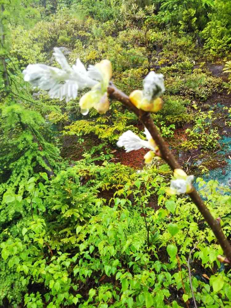 標高がちょっと高い所の2mくらいの木ですが、若葉が緑でなくシルバーです。