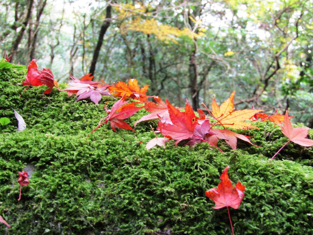 苔にのった紅葉、さらに鮮やかにみせてくれますね