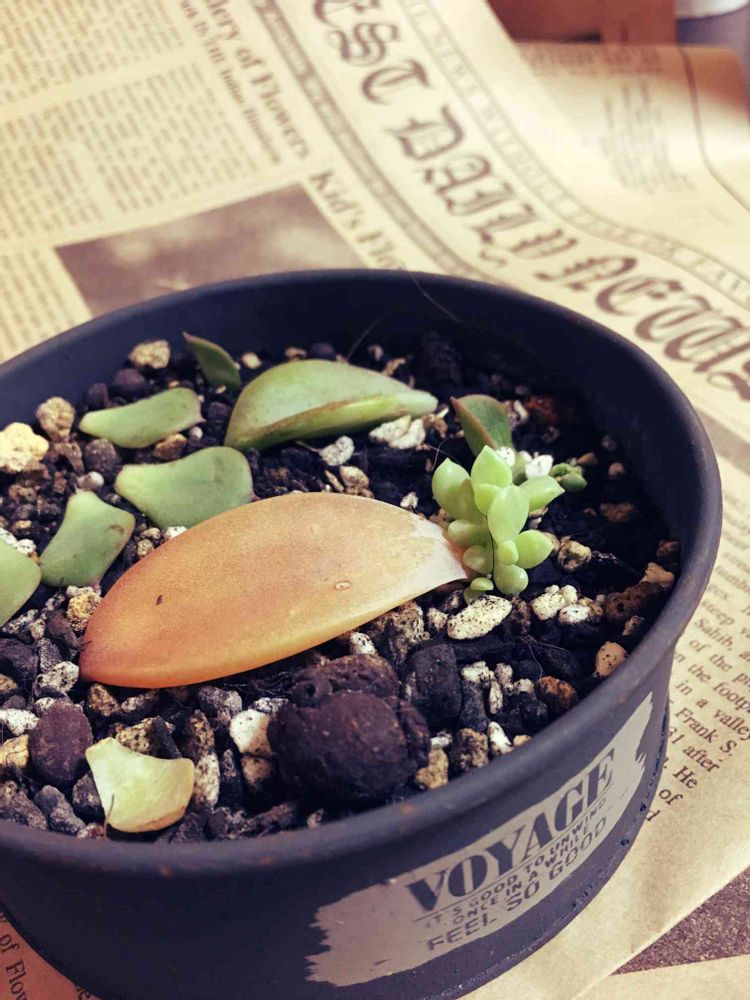 取れちゃった葉っぱをポイポイしている葉挿しトレー(`・ω・´)