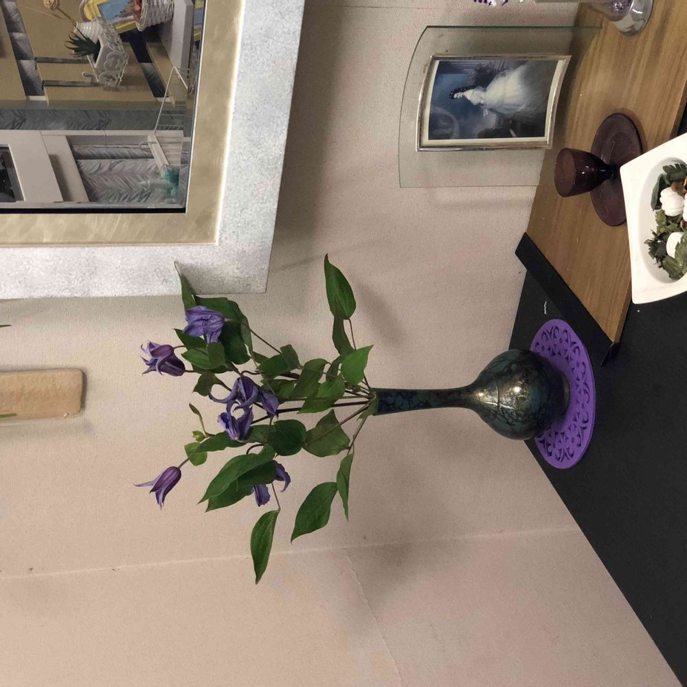 壁掛け仏壇「鏡壇ミラリエ」に今日(7/2)の誕生花の「紫色のクレマチス(鉄線)」を飾ってみました