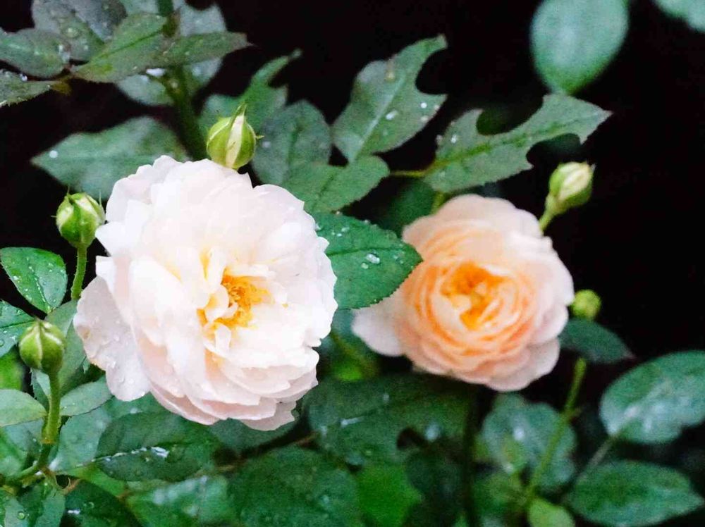 歯切りバチ被害はありますがふんわり綺麗に咲いています✨香りも麗しくて♡