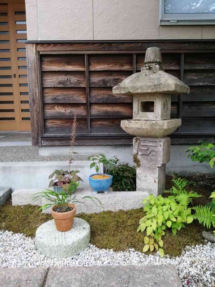 純和風ですが、織部灯篭の足元に植えたのはセイヨウイワナンテン種のルコテー"バーニングラブ"です。