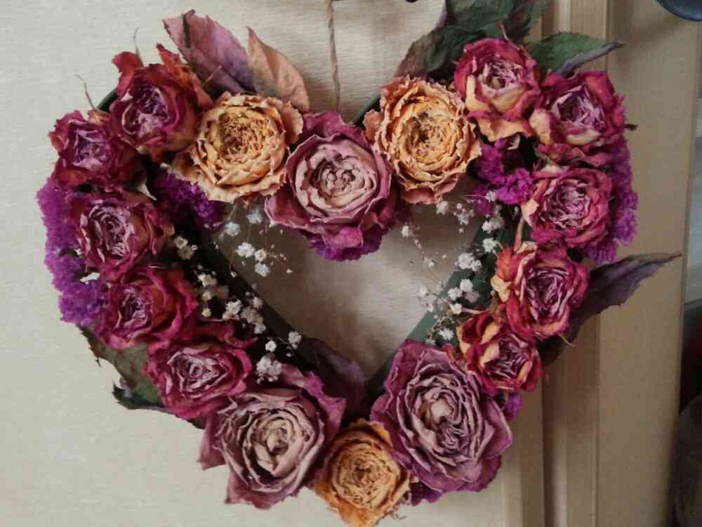こちらもハート型の薔薇さんのリースお上手ですネ😊