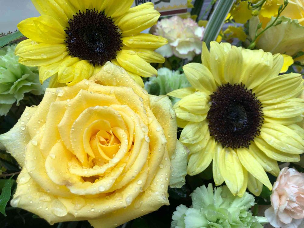 幸せ色なお祝い花🌼なんだけど隣がこないだpicしたスカイブルーの百合でした(^^)♪