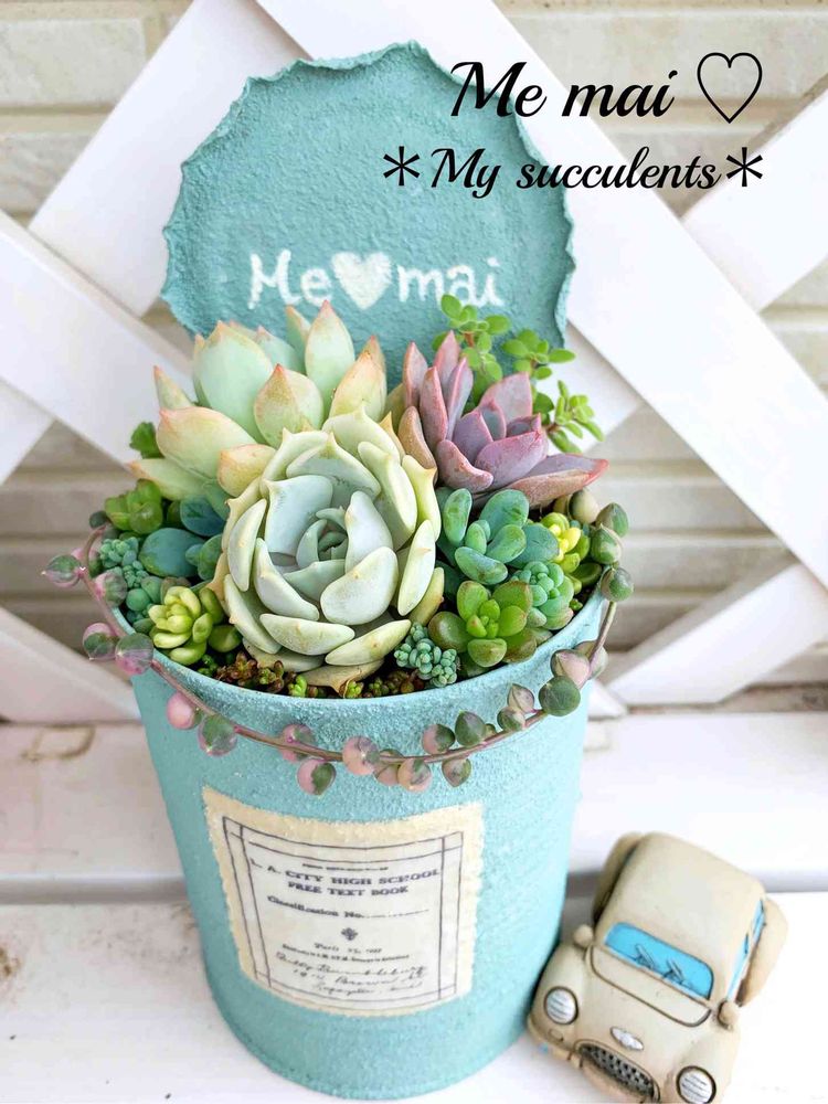 可愛いリメ缶のお陰で、不器用な寄せ植えも可愛く見えてくれています♡嬉しいです((o(。>ω<。)o))