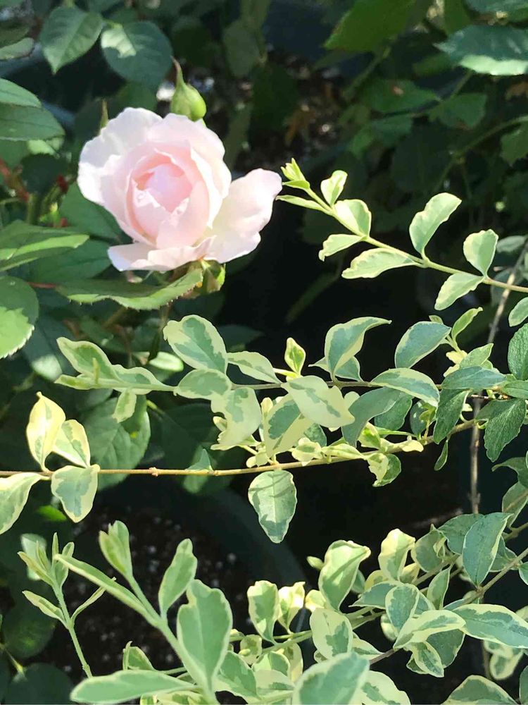 シルバープリペットさんの優しい斑入りの葉っぱ🌿が、🌹バラ💗さんといい感じですね❣️😉