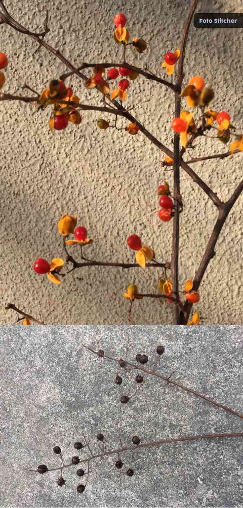 上:先月にもアップしたツルウメモドキが色づいてプチプチに熟して来ました❣️