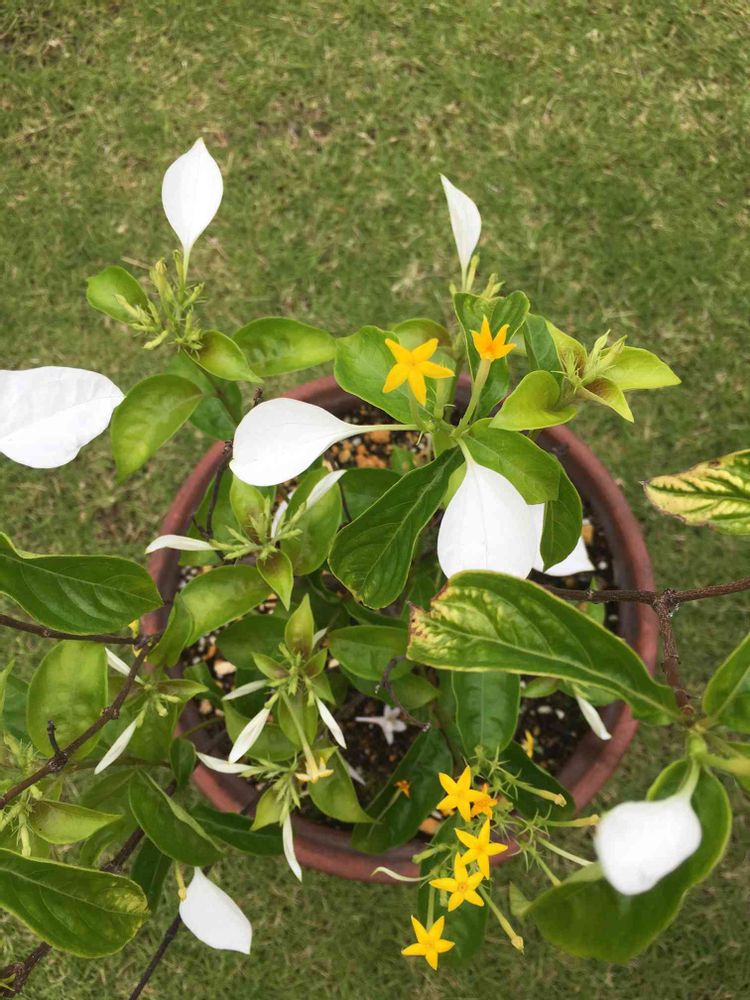 冬越しで耐えたコンロンカが開花しましたが、花は黄色なんだ。白のイメージだったので驚き‼️