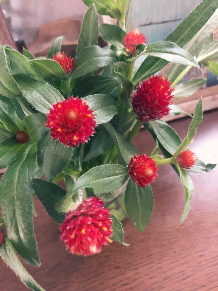センニチコウは濃いピンクや白はよく見かけ、売っているのですが真っ赤はなかなか見ないです。