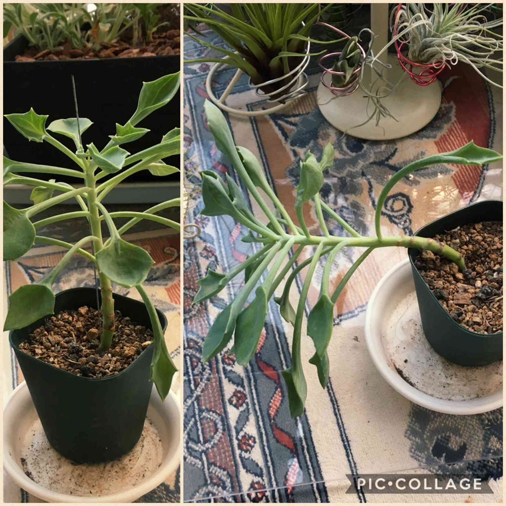 実は他にも伸びてくにゅんっと曲がっている多肉ちゃんがいるの😱