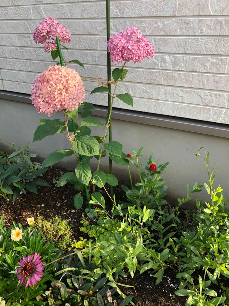 小さな庭,ピンクアナベル,千日紅 ストロベリーフィールドの投稿画像
