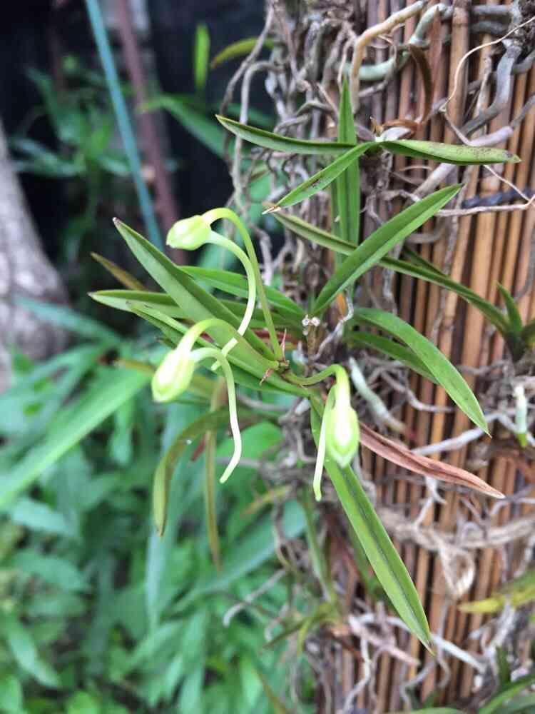 2カ月前、スダレを巻いた筒に植え替えつけたフウラン。