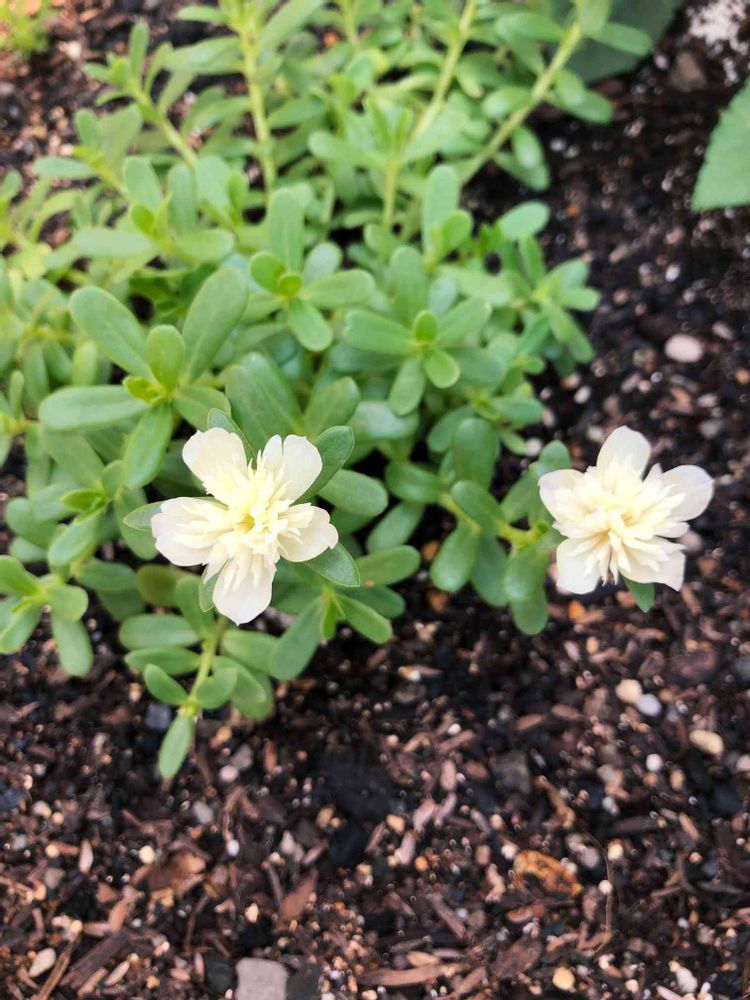 今年の我が家のポーチュラカは白の八重咲きを植えています😊