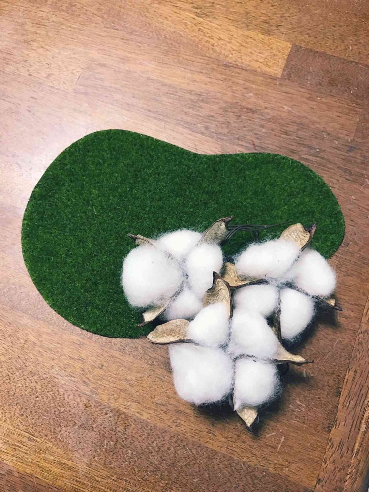 100均に可愛い芝マット?と、コットン(種を抜いてまたくっ付けてる感じ?)が売ってました〜✨