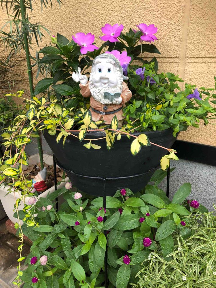 私の寄せ植えはお花がモリモリなってくれるのを想定して作るから寂しいところにはとりあえず置物が頑張ってくれるよ😅