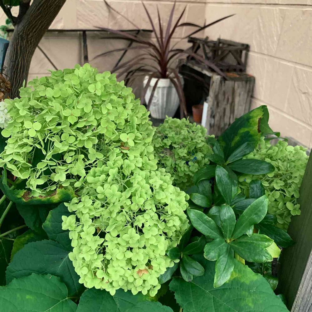 雨続きで 我が家のノリウツギ・ライムライトも倒れてだいぶ花数が減りましたが、かろうじて残っている子達...白からグリーンに変化してきました꒰˘̩̩̩⌣˘̩̩̩๑꒱可愛い...♪*゚ 今年は成長が著しいので 花が終わったら短めにカットしようかな😑でも来年ちゃんと咲くかな...😆