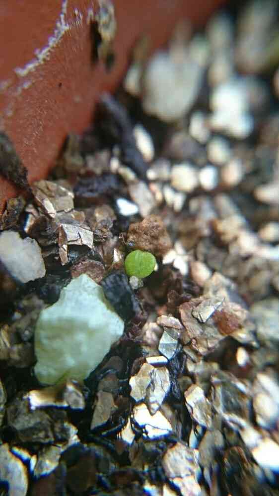一度は植え替えして空っぽにした蒔き床に 新しい発芽がありました。蒔いてもすぐには出ない子があるのは知っていたけど、乾ききった蒔き床に水やりしたのは昨日です。みなさん、諦めないでね🎵