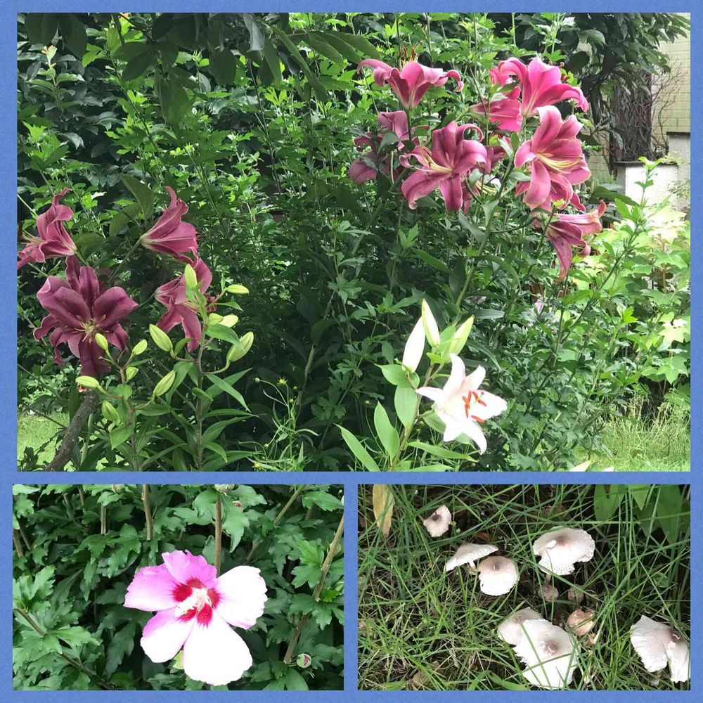 ユリ、ムクゲ、綺麗で雨でも咲くんですね🌸💕