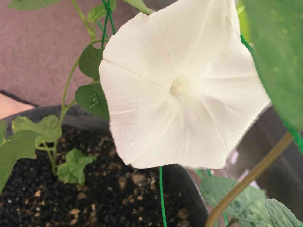 今日咲いた朝顔。摘芯したら蔓が伸びない株です😭