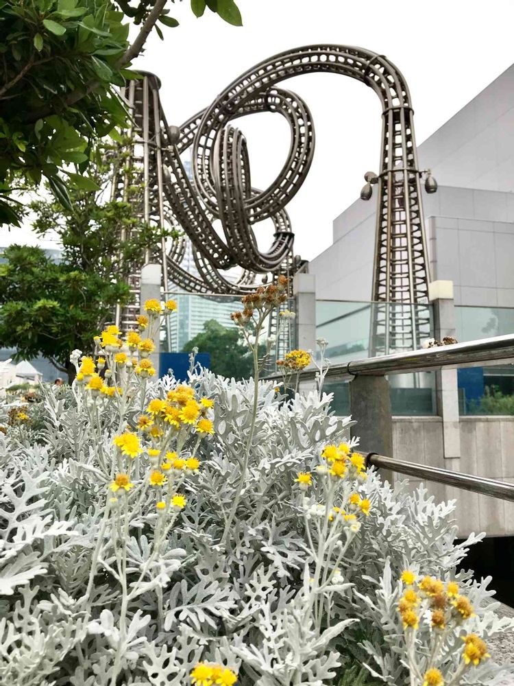 気絶してます絶対🤣ランドマークとクイーンズスクエアーの間にあるメタリックなオブジェは