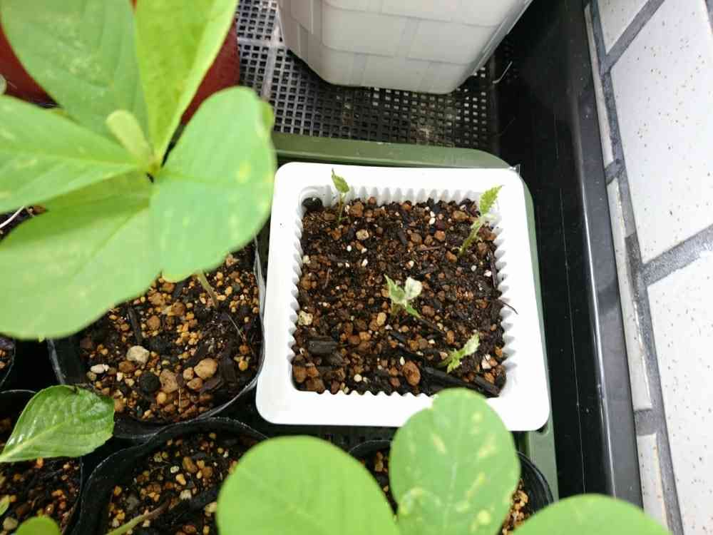 試しに植えてみたビワの種から出てきました🌱🌱🌱
