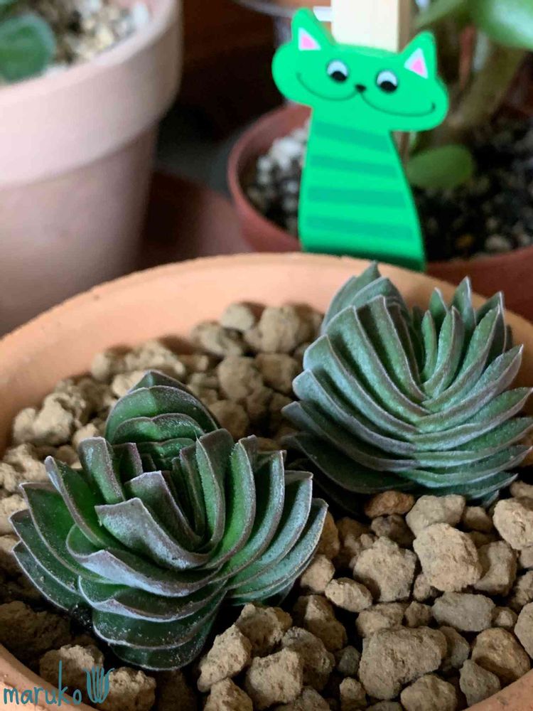 背が高くなっても綺麗に整った葉で成長してほしいです😊💗 ニャンコのクリップはオマケで付いてたんですけどキムナッキーが地味なんで丁度良かったです🤗
