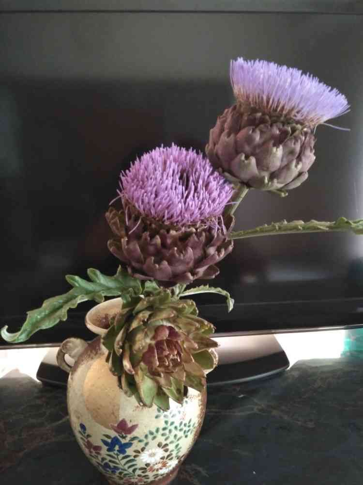 アーティチョークの株の傷みを考慮して、愛デアいただいた、生け花に挑戦中。