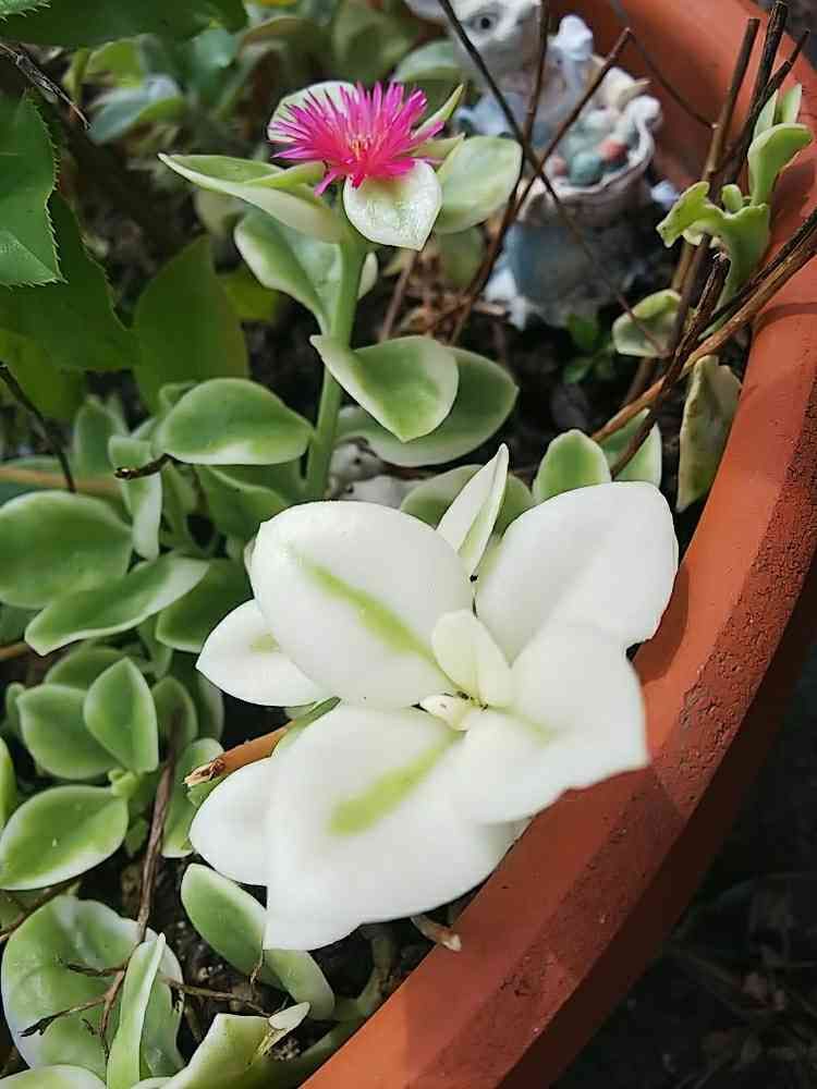 斑入り種の場合、茎にも当然斑が入ります。その白い箇所から新芽が出ると、このように真っ白な芽が出ることがあります。
