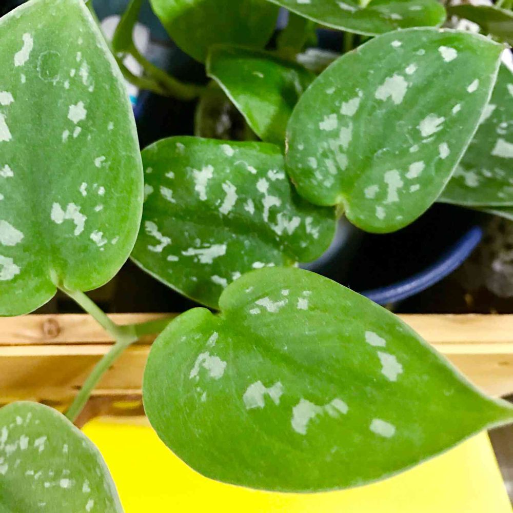 これも似たような感じなんですが仲間かな?たまたま通りかがった園芸店でタグなしでした。葉っぱの大きさはさっきのスキンダプサスの4分の1位。こっちの方が寒さに強そうな雰囲気です😊
