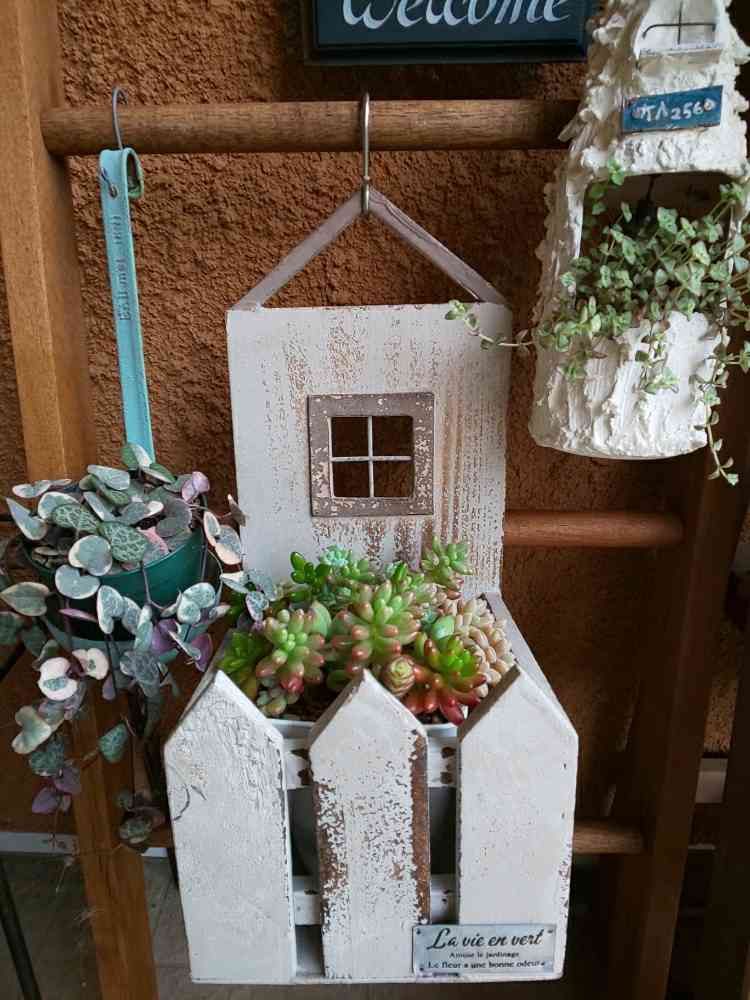 多肉棚が嬉しいことに満員御礼(笑)となったので、とっても大切な寄せ植え第1号さんは日当たり確保のため、ラダーの方へお引っ越し💚