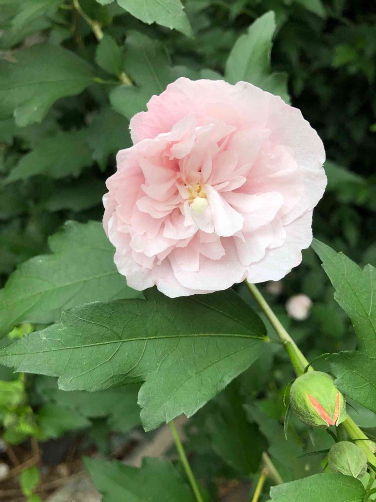 近所の道沿いに咲いている八重のムクゲ
