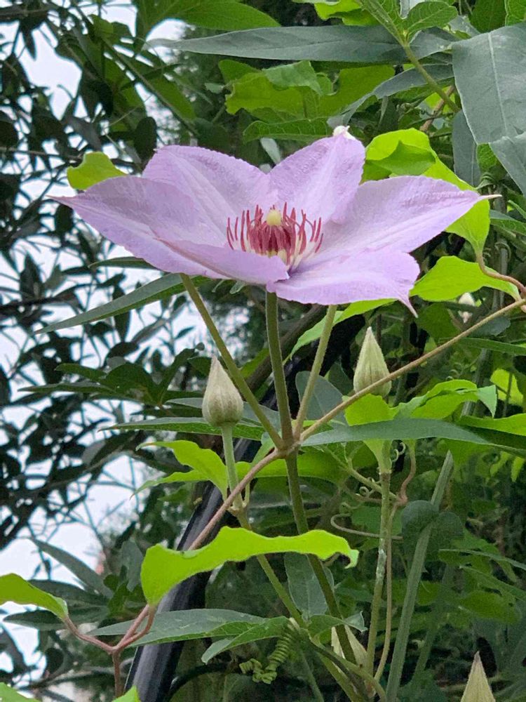 ところが、今になって大きな蕾が上がってきて、どのクレマチスが咲くんだろう✨と楽しみにしてたら、清姫だったのです。バラのアーチを2メートルほど上がったところで咲いているので、下から望遠で撮るしかなく、花を正面から撮ることができませんでした。やっと伸びたツルを大事にして、来年はもっと咲かせたいと思ってます☺️