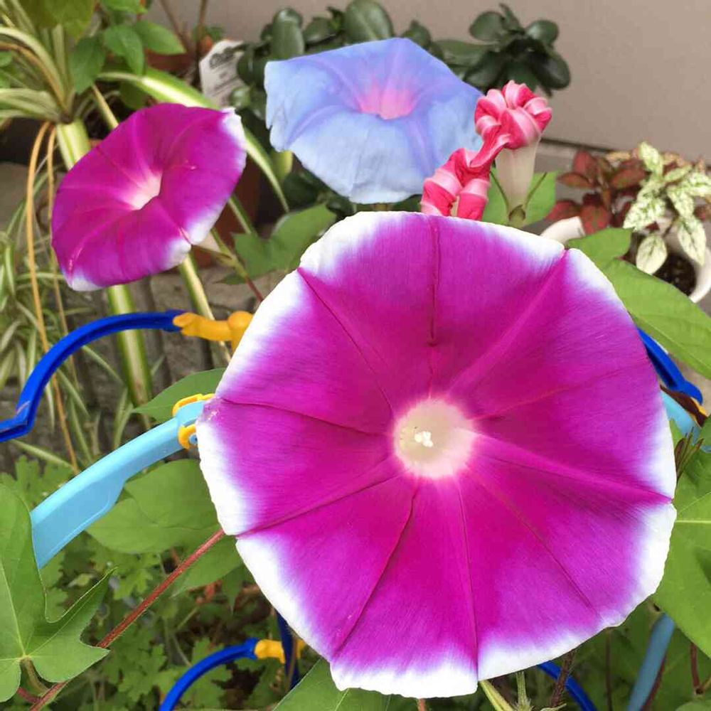 一年生の娘が学校から持って帰ってきた朝顔が、次々と咲いています😊