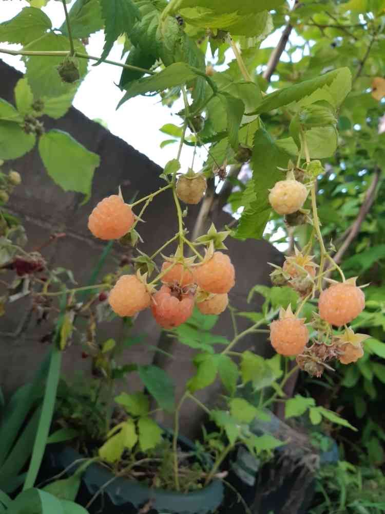 赤い木苺も一緒に植えたんだけど、いまひとつ実りがよくないのです。