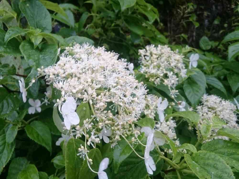 丸い形の白い花を咲かせています。😌🍀 今日は梅雨の中休みですが、3時過ぎから霧雨が降って来ました。😌🍀 宜しく願います。